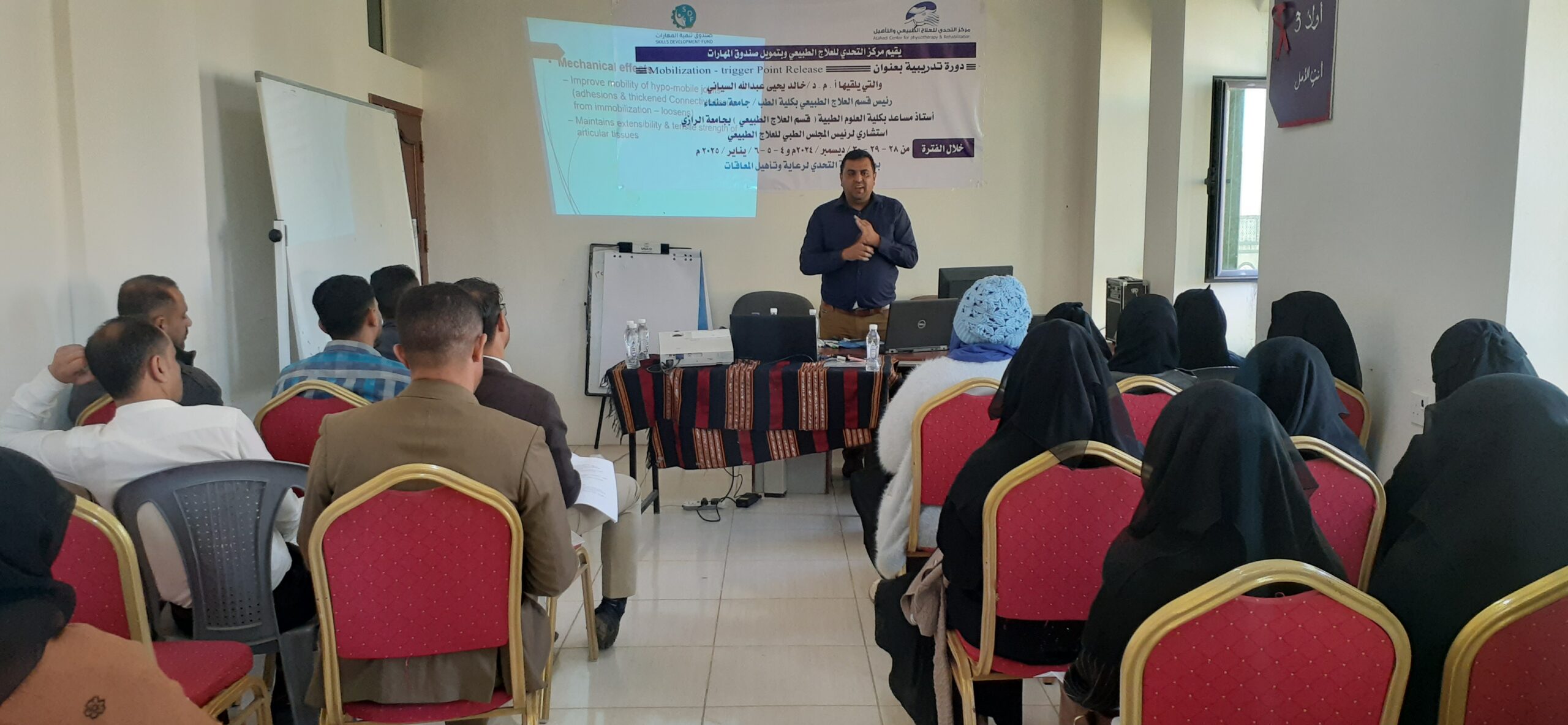 و استهدفت الدورة كادر مركز التحدي للعلاج الطبيعي وايضا بعض المشاركين من المراكز الاخرى في أمانة العاصمة حيث هدفت الدورة إلى رفع المستوي العلمي والعملي للكادر المتخصص في المركز وذلك لتقديم خدمات العلاج الطبيعي واعادة التأهيل بكفاءة علمية عالية .